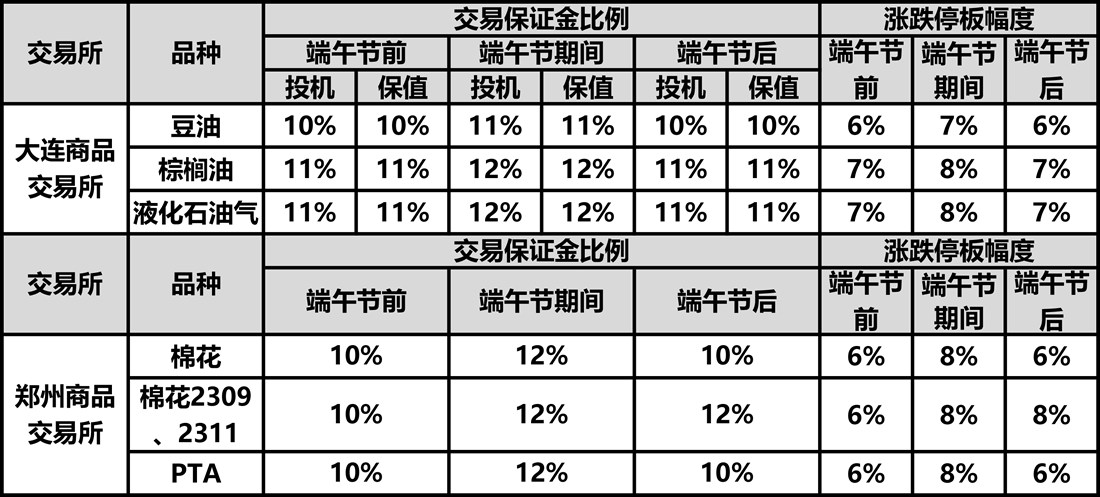 根據(jù)各交易所放假期間保證金調(diào)整通知,經(jīng)研究決定,公司從6月20日(星期二)結(jié)算時(shí)起調(diào)整如下表: