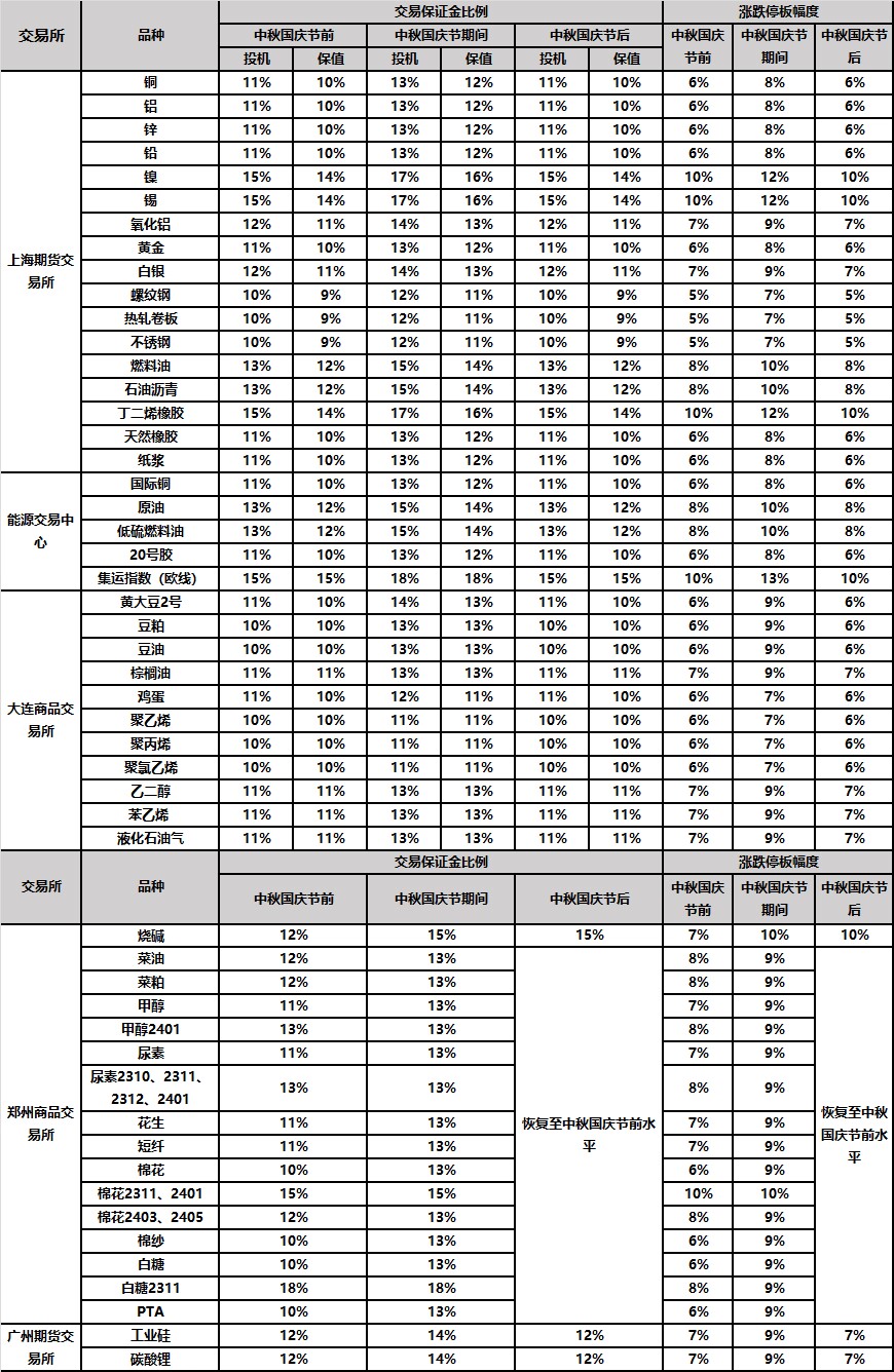 - 2023年中秋國慶節(jié)期間客戶保證金收取比例調(diào)整通知