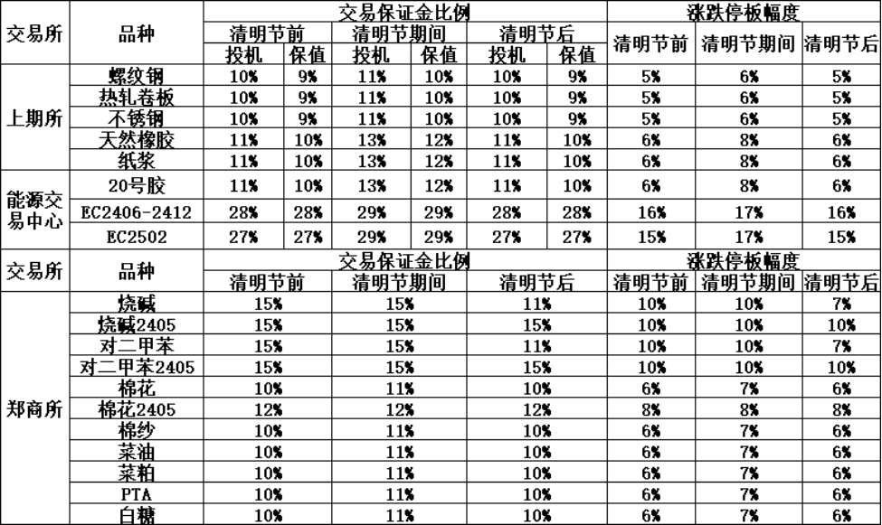 根據(jù)各交易所放假期間保證金調(diào)整通知,經(jīng)研究決定,公司從4月2日(星期二)結(jié)算時(shí)起調(diào)整見附表。