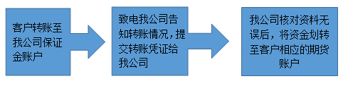注意事項: 1、 客戶在銀行柜臺辦理入金時,須直接從客戶的銀行結算賬戶轉賬入我公司的保證金賬戶,出金時公司將資金直接劃轉到客戶的銀行結算賬戶中,出入金均不可以用現金匯款方式劃轉; 2、 根據證監會《期貨保證金安全存管業務規則》中的要求,客戶用于期貨交易的出入金應當通過開設在同一期貨結算銀行的投資者期貨結算賬戶和我公司保證金賬戶以同行轉賬的形式辦理,如客戶的結算賬戶為工行賬戶,轉賬時須轉到我公司工行保證金賬戶中。 |