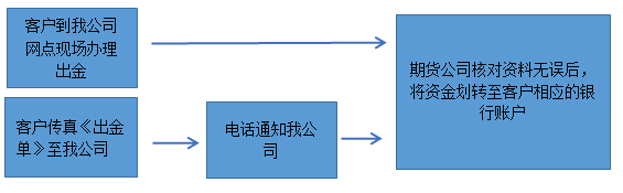 3、公司交易服務、結算、財務部門核對信息無誤后將資金劃轉至客戶的期貨賬戶。 出金流程: 1、 客戶可在交易時間到公司營業網點現場辦理出金手續; 2、 如無法到營業網點現場辦理,可下載《出金單》填寫賬號金額等信息并簽字后傳真至我公司營業網點,并電話通知我公司營業網點辦理出金手續; 3、 公司結算、財務部門核對信息無誤后將資金劃至客戶的銀行結算賬戶。