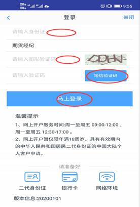 掃描二維碼下載手機(jī)開戶APP并安裝(Android4.0以上系統(tǒng)或IOS7.1以上系統(tǒng)的智能手機(jī),蘋果客戶端也可以直接從App Store搜索“期貨開戶云2019版”下載安裝),