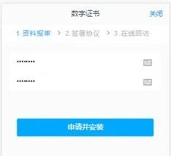 (8)視頻完成后,進(jìn)入安裝數(shù)字證書界面,此處設(shè)置的密碼一定要記住,在之后的流程中會(huì)用到驗(yàn)證證書的密碼。否則,只能刪除本地證書文件,重新視頻驗(yàn)證、安裝證書才可通過。