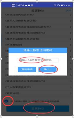 (9)進(jìn)入簽署協(xié)議界面,點(diǎn)擊簽署協(xié)議,輸入數(shù)字證書,確認(rèn)。