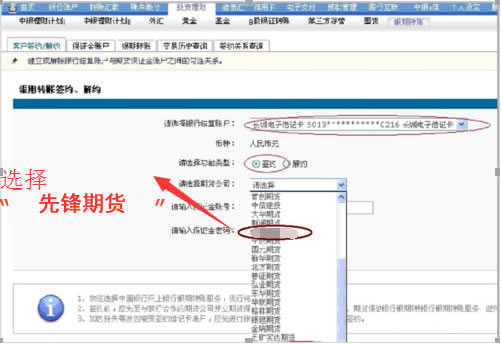 .在“投資理財”選項下面,選擇“銀期轉賬”,點擊“客戶簽約/解約”,根據提示辦理銀期簽約。