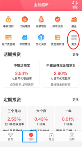 登陸手機網(wǎng)銀,點擊“理財”-“更多”